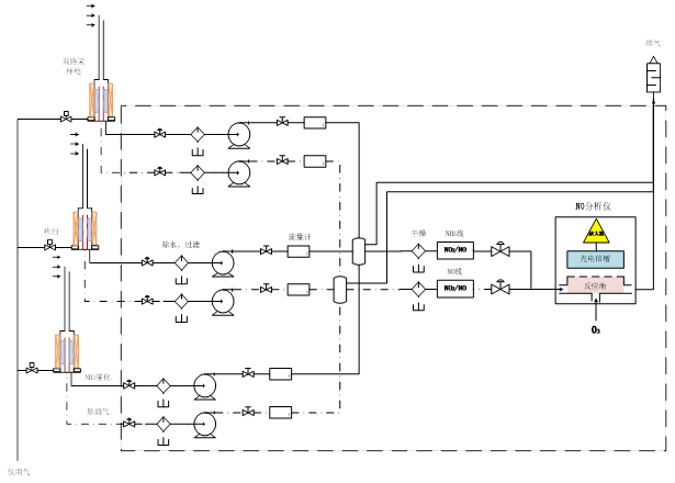 ◇ 選用化學(xué)發(fā)光法檢測NO。在化學(xué)發(fā)光法測量系統(tǒng)中,未對樣氣進(jìn)行稀釋時(shí)儀表測量精度達(dá)ppb級,為杜絕多點(diǎn)稀釋比不一致和稀釋比隨著污染而改變引起的誤差,該系統(tǒng)采用非稀釋法取樣,從而確保分析儀表的高精度、無漂移測量。