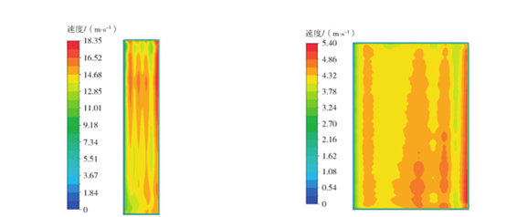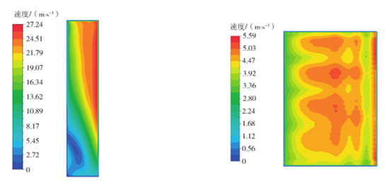 圖3 改造前噴氨區(qū)域煙氣速度分布 圖4 改造前首層催化劑入口煙氣速度分布