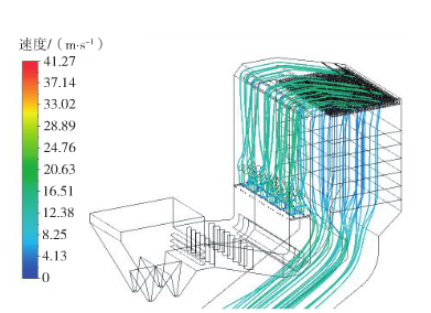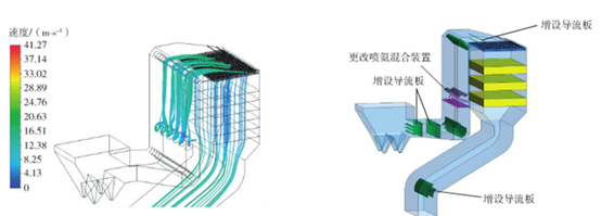 圖7 改造前氨氣流線 圖8 優(yōu)化后脫硝裝置CFD模型