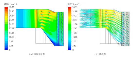 圖9 優(yōu)化后省煤器出口擴(kuò)張煙道流場(俯視圖)