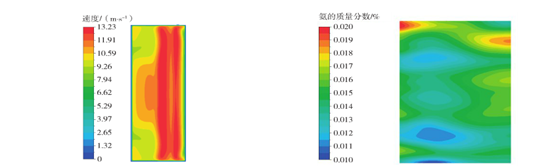 圖12 優(yōu)化后反應(yīng)器出口煙氣速度分布 圖13 優(yōu)化后首層催化劑入口氨濃度分布