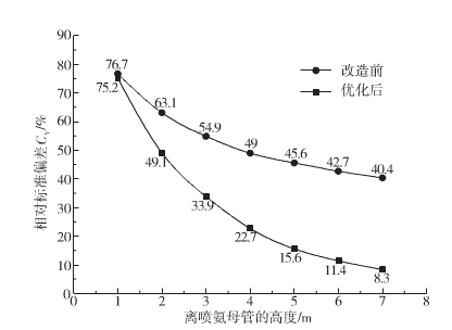 圖 16 改造前和優(yōu)化后氨濃度分布均勻性
